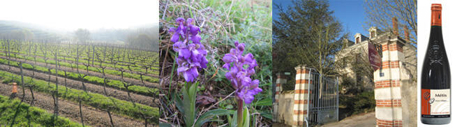 2007年にセドリック、ヴェロニク夫妻が取得した新しいドメーヌです。ロワールのアンジュー、ラブレ シュール レイヨンに位置し、約30haの畑を所有しています。畑はレイヨン川に面した場所にあり、レイヨン川より北は片岩質でテロワールの特徴がワインに出やすく、川より南は砂利質で品種の特徴が出やすい土壌です。彼らがこのドメーヌを取得してから、殺虫剤、除草剤を使用せず、この地方では珍しく手摘み収穫を行っています。除草剤の使用を止めた畑には、自然と野生の蘭やスミレなどが咲くようになりました。エチケットに描かれている花のような模様は長身のセドリック・ヴェロニク夫妻を表しています。近隣で他に生産している人がいないグロローという品種を100%使用したワインを、品種に惹かれまた保護するためにも生産しているなど、個性的なワインも生産しています。