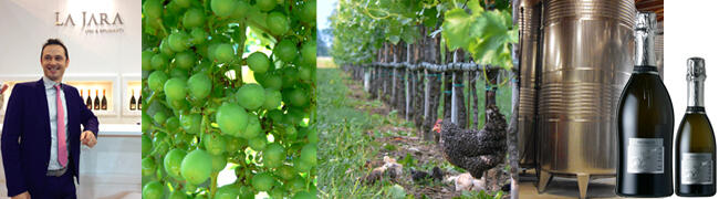 約40haの自社畑を所有し、ビオロジック農法で栽培を行っています(2000年ICEAの認証を取得)。ワイナリーの名称“ラ ジャラ”はこの地方の方言で「小石」という意味を持ちます。近くを流れるピアーヴェ河から運ばれてきた小石と沈泥(シルト)質の多く含まれる土壌は日中に熱を蓄え、夜の間にゆっくりとその熱を放出していきます。これによりブドウ果実にフレッシュで華やかな風味が生まれます。また、土壌には石灰分も含まれ、ブドウに繊細な味わいを与えています。